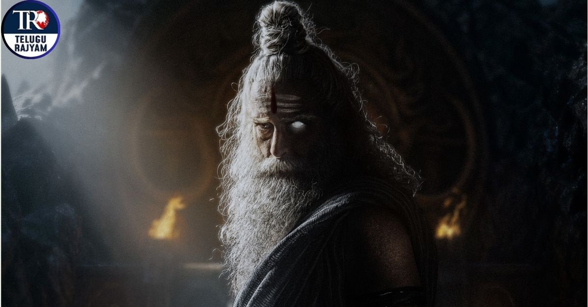 Introducing Akshaye’s character, his first look from the movie is unveiled. The striking visual captures Shukracharya, the revered guru of the Asuras in Hindu mythology, standing in front of a colossal mountain fortress, enclosed by towering rock cliffs that rise like guardians of a forbidden secret. The storm-laden sky looms above as tongues of fire flicker from ancient altars, casting an austere glow upon the sage.