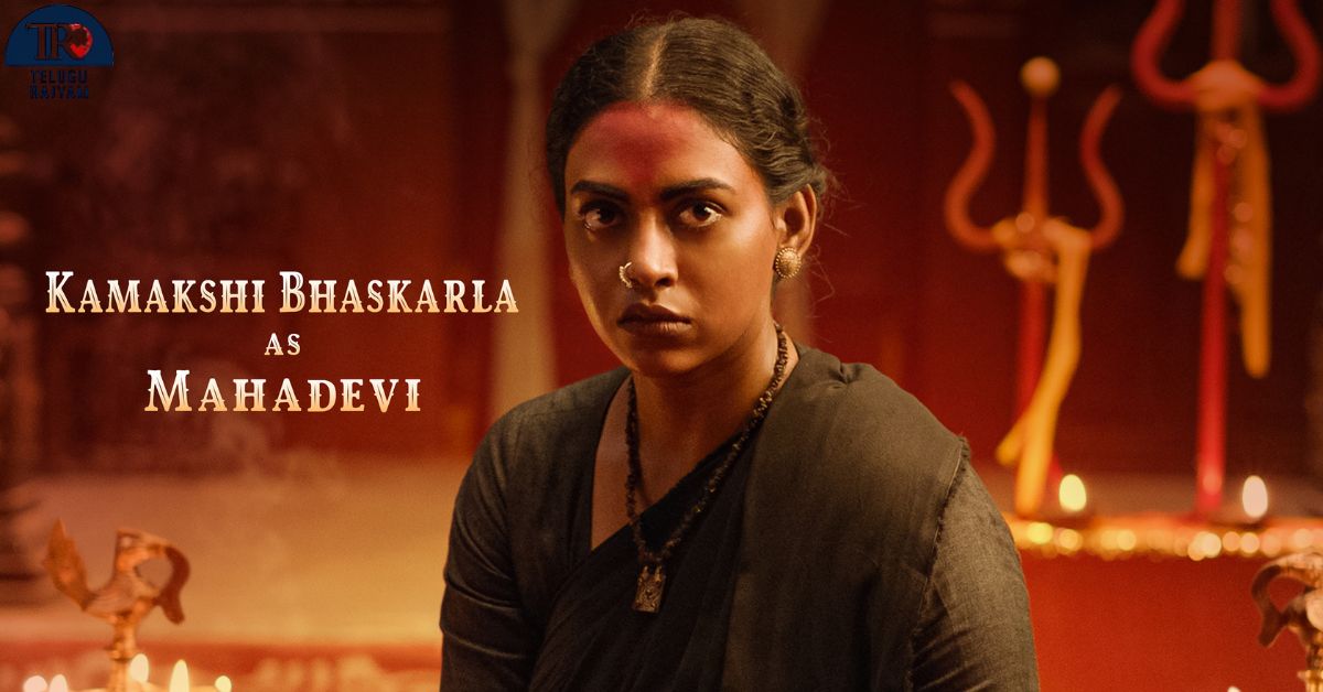 With this announcement, the visual imagination that MS Raju created through the first poster now finds a face and a powerful screen presence. Draped in a traditional black saree, seated intensely before the mystic backdrop of tridents, lamps, and the towering idol, Kamakshi Bhaskarla’s look itself suggests that her character carries significant weight in the narrative. Her fierce expression, traditional appearance, and the spiritual aura around the setting hint that Mahadevi is not just a regular character but someone deeply connected to the mystical core of the story.