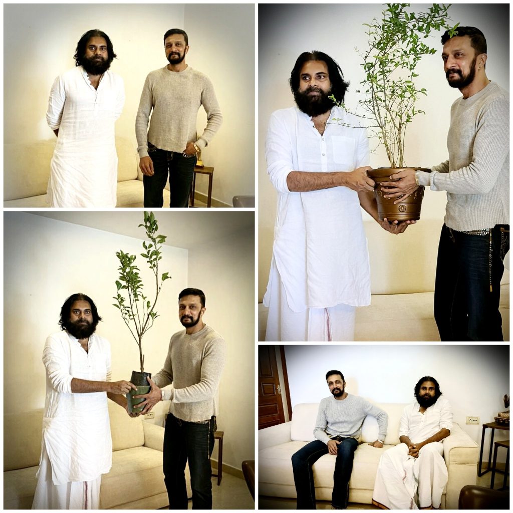 Kannada superstar Kichcha Sudeepa met with Janasena chief Pawan Kalyan at the latter’s residence in Hyderabad today. The meeting is said to be a casual one.
