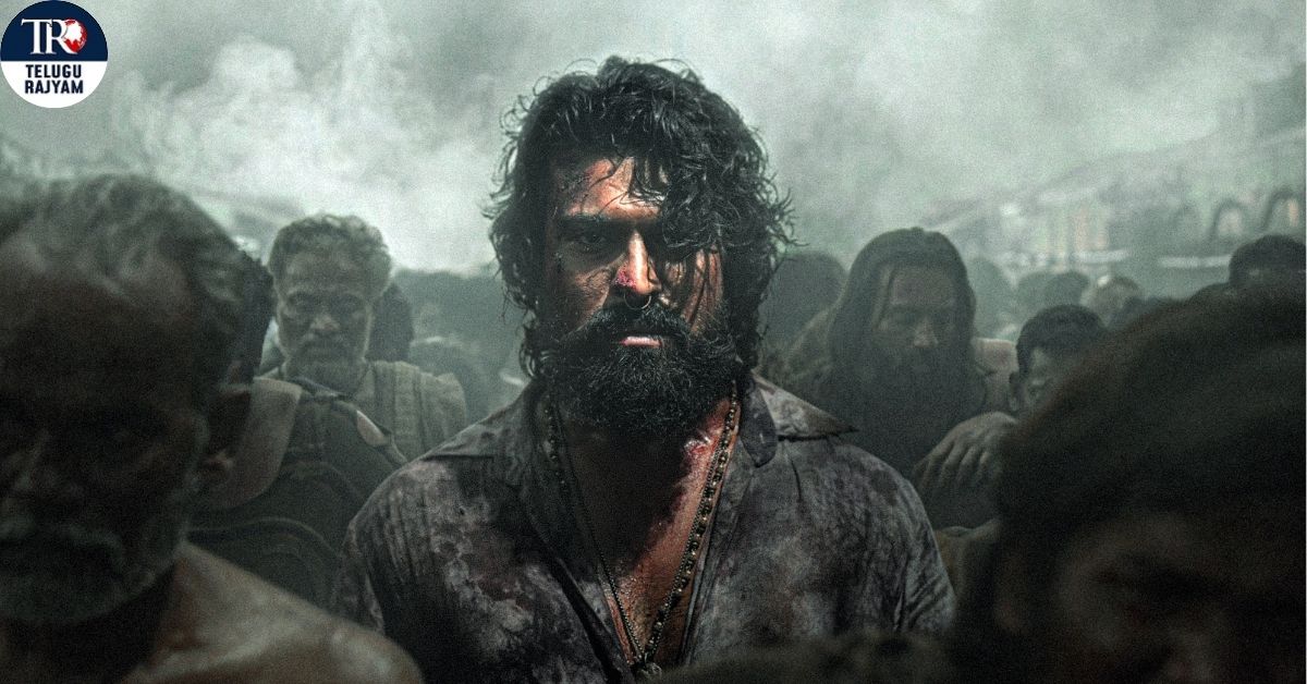 The release date poster shows Ram Charan in a completely new and massy look, with long messy hair, a thick beard, and a nose ring. His fierce eyes cut through the smoky, chaotic surroundings as he emerges from a dense crowd of worn-out, grim-looking people. The entire frame is drenched in gritty tones, creating a sense of struggle, rebellion, and unrest.