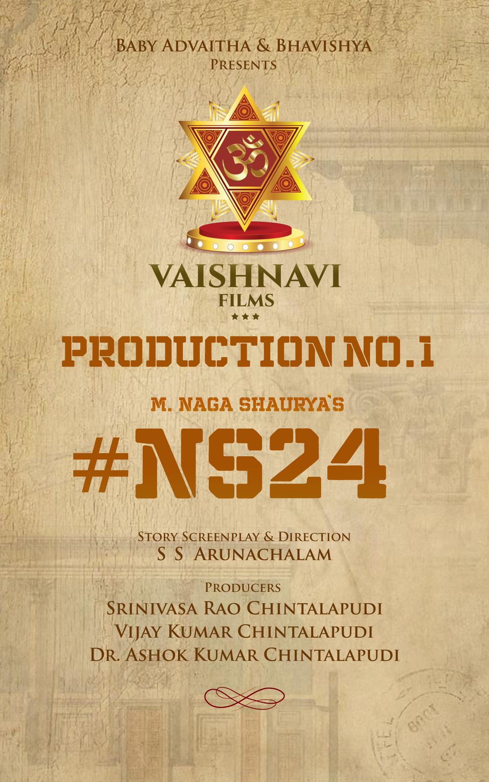 Srinivasa Rao Chintalapudi, Vijay Kumar Chintalapudi and Dr Ashok Kumar Chintalapudi will be producing the movie on a grand scale under the Vaishnavi Films banner as Production No1. Baby Advaitha and Bhavishya will present the movie.