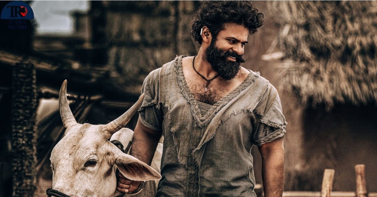 The poster showcases Sai Durgha Tej in an earthy, completely rooted village look. Wearing a a grey shirt and traditional panche kattu, SDT is seen walking barefoot through a rural backdrop, gently guiding a majestic white bull. His thick beard, intense eyes, and subtle smile capture both grit and warmth, adding layers to his rustic transformation.