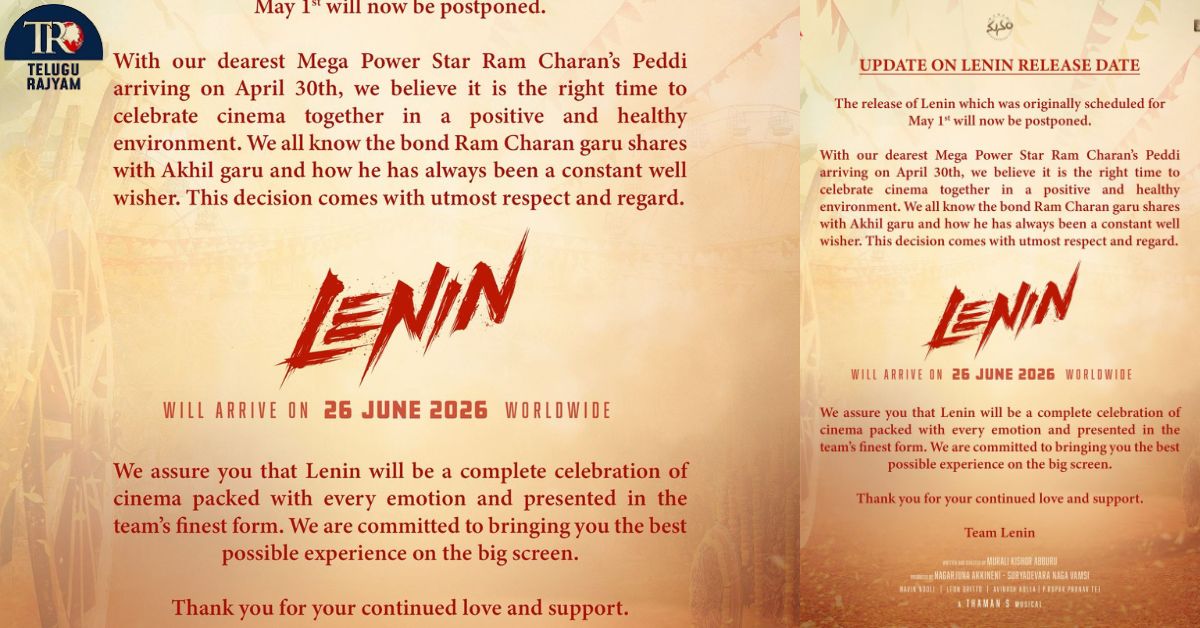 The decision comes in light of the upcoming release of Mega Power Star Ram Charan’s Peddi, which is set to hit screens on April 30th. Out of mutual respect and to ensure a positive theatrical environment, the team of Lenin has chosen to reschedule their release.